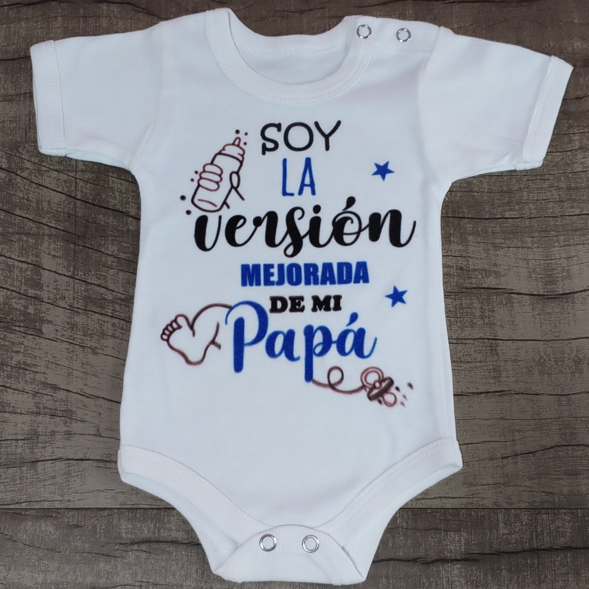Body soy la versión mejorada de mi papá (talle 0 manga corta) en la segunda foto se ve el detalle que quedo borroso